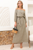 Платье прилегающего силуэта из вискозной ткани с вытканным жаккардовым узором "рептилия". Крой платья по косой. Втачной длинный рукав. Круглый вырез горловины, сзади застёжка на петлю-пуговицу.