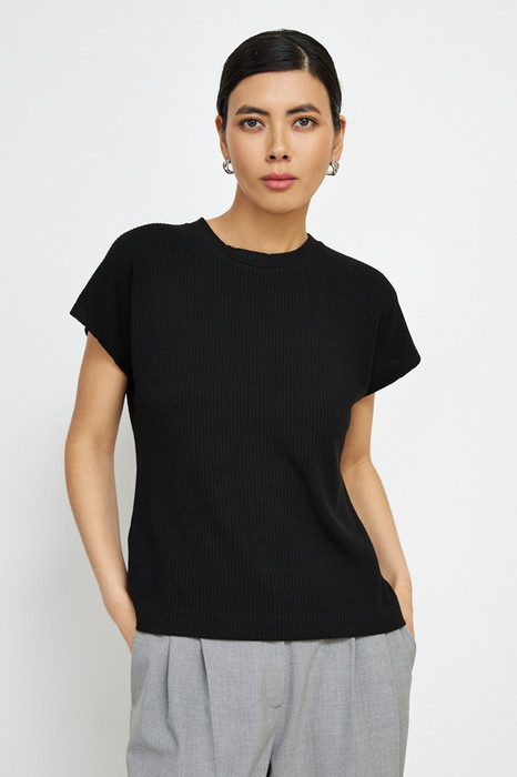 Джемпер свободного силуэта из фактурного эластичного полотна. Цельнокроеный короткий рукав. Круглый вырез горловины оформлен бейкой. Женский джемпер стал незаменимой и популярной разновидностью одежды, которая может применяться буквально во всех случаях жизни.