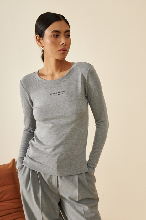 Джемпер прилегающего силуэта из меланжевого эластичного полотна. Втачной длинный рукав. Круглый вырез горловины оформлен бейкой. Джемпер – это хорошая базовая вещь, подходящая для любого гардероба.