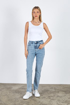 Топ на лямках из эластичного полотна в рубчик. Прилегающий силуэт. Линия горловины и линия проймы окантованы эластичной бейкой.