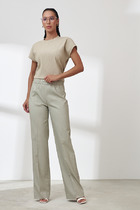 Платье из фактурной вискозной ткани. Свободный силуэт, с разрезом в боковом шве. Круглый вырез горловины окантован косой бейкой из основной ткани. Цельнокроеный рукав с притачной манжетой. В комплекте пояс из основной ткани. В таблице размеров представлены параметры человека, а не изделия.