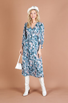 Платье из вискозной ткани с крэш-эффектом полуприлегающего силуэта. По центру передней части изделия выполнен шов, снизу разрез. V-образный вырез горловины и линия проймы оформлены косыми бейками.
