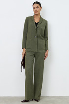Брюки из костюмной ткани прямого силуэта. На передней половинке изделия выполнены карманы с подкройным бочком, на задней - талиевые вытачки и имитация карманов в рамку. Притачной пояс со шлёвками. Застёжка на молнию-гульфик и пуговицу. Такой крой выгодно подчеркнёт длину ваших ног.