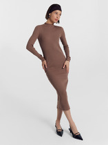 Платье из эластичного полотна свободного силуэта. Изделие со спущенной линией плеча и длинным рукавом. Вырез горловины оформлен бейкой из основной ткани. В таблице размеров представлены параметры человека, а не изделия.