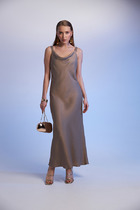 Платье полуприлегающего силуэта из эластичного полотна. Круглый вырез горловины оформлен притачной бейкой. Втачной длинный рукав.