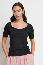 Джемпер свободного силуэта со спущенной линией плеча и рукавом до локтя выполнен из мягкого эластичного полотна. Вырез горловины оформлен бейкой из основной ткани. В таблице размеров представлены параметры человека, а не изделия.