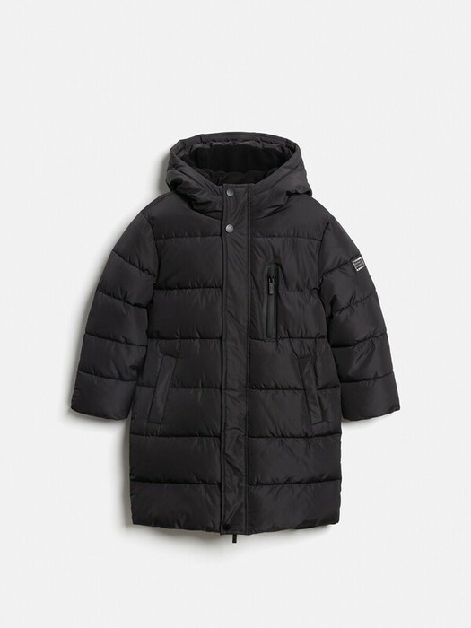 Утеплённое стеганое пальто с капюшоном для мальчика выполнено из водонепроницаемой ткани, которая выдерживает мелкий дождь и мокрый снег. Утеплитель — синтепух (вес 300г/м2) делает комфортным ношение при температуре от +5 до -15 градусов. Подкладка для тела и карманов выполнена из стандартной подкладочной ткани. Спереди расположена застёжка на двухзамковую молнию с защитой от защемления подбородка, а также внешней и внутренней ветрозащитными планками; внешняя застегивается на кнопки. Два кармана в листочку добавляют модели практичности, дополнительный карман на водонепроницаемой молнии позволяет держать под рукой проездной билет или купюру. Трикотажные манжеты обеспечивают плотное прилегание к запястьям и сохранение тепла. Левый рукав украшен силиконовой нашивкой с надписью "KEEPING IT AUTHENTIC" англ. - "Сохранение подлинности". Несъемный капюшон защитит ребенка от ветра и непогоды. Стильная темно-серая удлиненная куртка станет отличным выбором для холодного времени года.