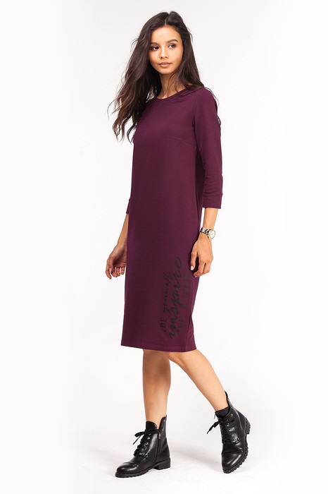 Состав: 95%Хлопок 5%ПУБазовое платье из хлопкового футера с эластаном. Силуэт прямой. Внизу платье украшено лаконичным принтом с надписью разными шрифтами.