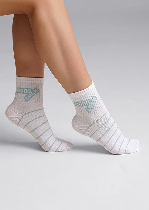 укороченные женские носки в полоску с надписью на паголенке