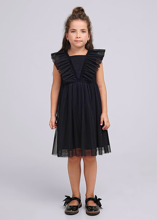 Воздушное платье для девочки создано для волшебных образов! Низ - двухслойная юбка, верхний слой из мягкой сетки. Пышные рукава -""крылышки"" - из такой же сетки. Стильный вариант для любого праздника!