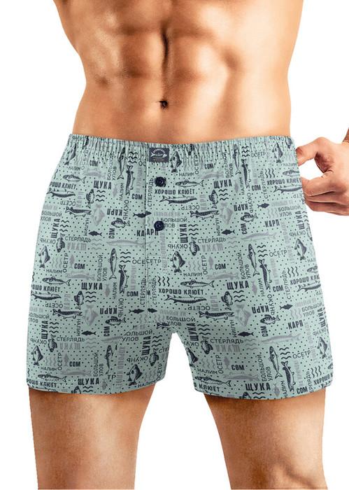 Боксеры комфортной посадки выполнены из оригинального полотна в дизайнерскую набивку в тематике рыбалки. Трусы дополнены пуговицами и жаккардовым логотипом.