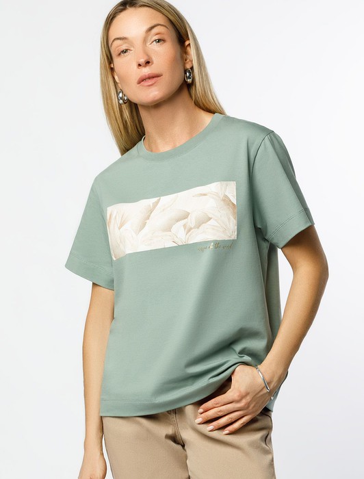 Состав: 92%Хлопок 8%ПУПеревод принта: Music of the wind - музыка ветра. Футболка выполнена из премиального хлопка с эластаном. Авторский принт нанесен красками с устойчивым покрытием. Модель среднего объема легко впишется в повседневные аутфиты и добавит акцента в образы. Эластичный материал гарантирует комфорт и формоустойчивость. Изделие дополнено металлическим логотипом бренда.