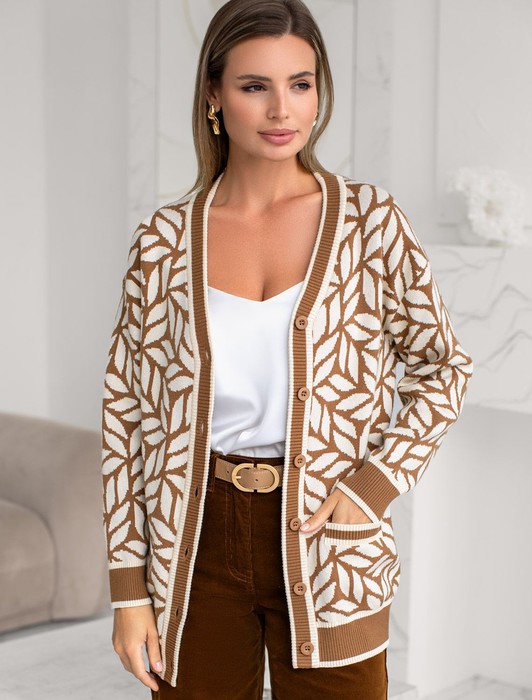 Состав: 50%Вис 20%ПА 20%ПЭ 10%Кашемир Параметры модели на первом фото: Рост 170, бюст 89, талия 63, бедра 92Кардиган жаккардовой вязки выполнен из нежной пряжи на основе вискозы с добавлением кашемира. Мягкая модель не раздражает кожу, приятно ощущается на теле и поддерживает комфортный микроклимат. Совет стилиста: модель гармонично впишется в любой гардероб, добавив образу выразительности. Сочетайте с однотонными брюками, юбкой, платьем или джинсами