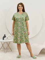 Пижама женская из трикотажного полотна «кашкорсе» с набивным рисунком, состоящая из футболки и шорт. Футболка - классического покроя, полуприлегающего силуэта, с короткими втачными рукавами, углубленной формой горловины, по центру которой выполнена небольшая сборка. Низ изделия и нижние срезы рукавов обработаны подгибкой, срез горловины - эластичной тесьмой с фасонным краем, в центре настрочен узкий декоративный бантик.Шорты – короткие, полуприлегающие, с эластичной тесьмой по талии.
