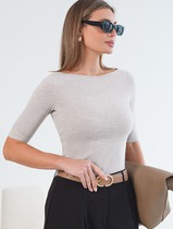 Vilatte Футболка облегающая из хлопка в рубчик с U вырезом и матовым покрытием м