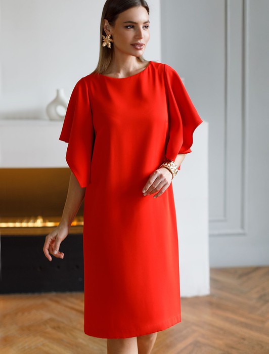 Состав: 69%ПЭ 23%Вис 8%Лиоцелл (Вис) Параметры модели на первом фото: Рост 170, бюст 89, талия 63, бедра 92Платье из плотного струящегося крепа прямого кроя с «парящими» рукавами. Фасон платья сбалансирует любой тип фигуры: прямой свободный крой, универсальная длина подола – чуть ниже колена, широкая пройма и акцентные рукава. Классический О-образный вырез фиксируется сзади изящной золотой пуговицей. Материал почти не мнется и комфортен в носке.