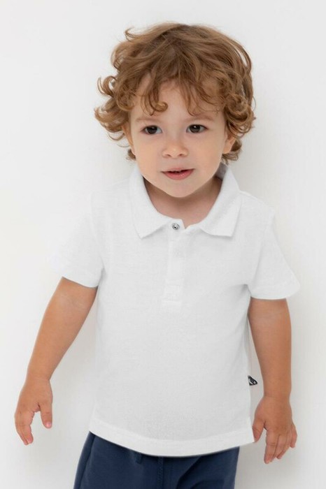 Поло для мальчика. Изготовлено из высококачественного трикотажного полотна пике. У изделия вязаный воротник и застежка спереди на две кнопки.