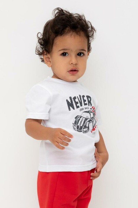 Футболка для мальчика из высококачественного трикотажного полотна. Оригинальный принт выполнен из стойких текстильных гипоаллергенных красителей. Для удобства на плече застежка на кнопки.