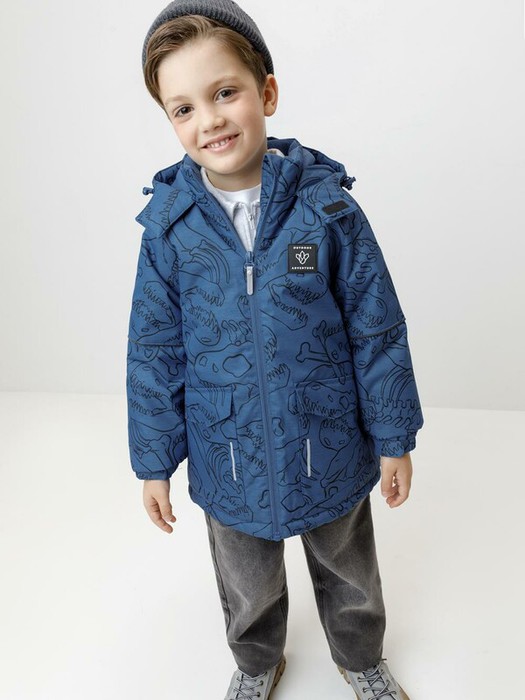 Зимняя куртка для мальчика с утеплителем Fellex®: 250 г/м2. Выполнена из мембранной ткани с дополнительной тефлоновой обработкой, которая предохраняет изделие от загрязнений и отталкивает влагу. Подклад выполнен из 100% полиэстера Tricot. Куртка застёгивается на молнию, предусмотрена защита подбородка. Несъёмный капюшон имеет эластичную утяжку со стопперами. На рукавах эластичные манжеты, которые регулируются по ширине при помощи липучек. По бокам два накладных кармана с клапанами на магнитных кнопках. По низу куртки эластичная утяжка со стопперами. Во всех изделиях верхнего ассортимента для безопасности ребёнка предусмотрены светоотражающие элементы.