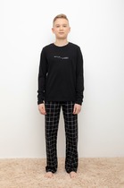 Новогодняя пижама из натурального хлопка. Джемпер с длинными втачными рукавами и брюки с эластичной резинкой в поясе. Мягкие манжеты на рукавах и по низу брюк. Пижама отлично подойдёт для создания уютных домашних образов или в качестве подарка на Новый год и Рождество. Оригинальная набивка выполнена из стойких текстильных гипоаллергенных красителей. Изделие сохраняет цвет и форму после многократных стирок. Все трикотажные полотна производятся в соответствии с нормами швейцарского сертификата ЭкоТекс.