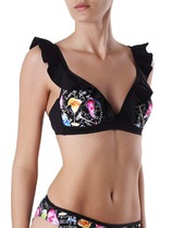 Верх, представленный в виде Push Up с формованными чашками, эффектно приподнимает грудь, визуально увеличивает объем и формирует красивое декольте. Эластичные регулируемые бретели и боковые детали, усиленные вертикальными пластинами, создают дополнительный комфорт. В комплект входят удобные слипы со средней посадкой.
