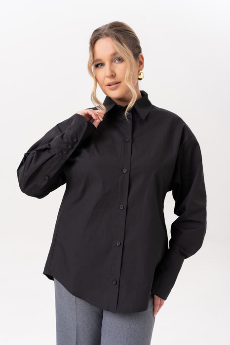 Рубашка оверсайз представляет собой универсальный выбор для современной женщины. Созданная из комфортного материала, эта рубашка обеспечивает идеальное сочетание стиля и удобства. Она отличается свободным кроем и посадкой, что делает её идеальным выбором для повседневного ношения, офисной работы или даже вечеринки. Отлично подходит работникам школы. Рубашка оснащена пуговицами и петлями для застегивания, что обеспечивает удобство в надевании и снятии. На рубашке обработаны воротник и манжеты. Спинка с кокеткой и встречной складкой. Отсутствие декоративных элементов делает её универсальной и подходящей для любого стиля. Гладкая фактура материала и длинные рукава добавляют элегантности и изысканности. Благодаря своему универсальному назначению, эта рубашка подходит как для офисного стиля,  так и для повседневного ношения, и в том числе на выход. Её однотонная структура и бескарманная конструкция делают рубашку идеальным выбором для тех, кто ценит простоту и стиль.