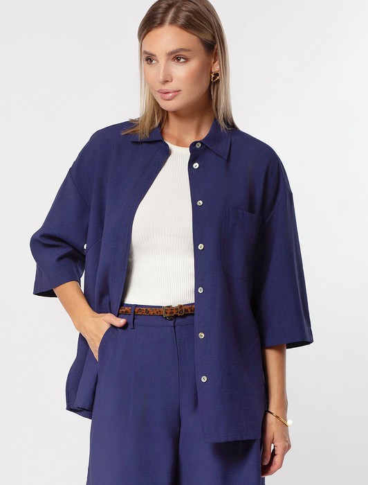 Состав: 70%Лиоцелл (Вис) 30%ПЭБлузка свободного кроя выполнена из плотного лиоцелла. Застежка на пуговицы из натурального перламутра. Добавление синтетических волокон в составе изделия предотвращает сминаемость. Подходит для любой фигуры. Для создания расслабленного образа, сочетайте в костюме с брюками D24.214, D24.218, шортами D28.054 и юбкой D26.181