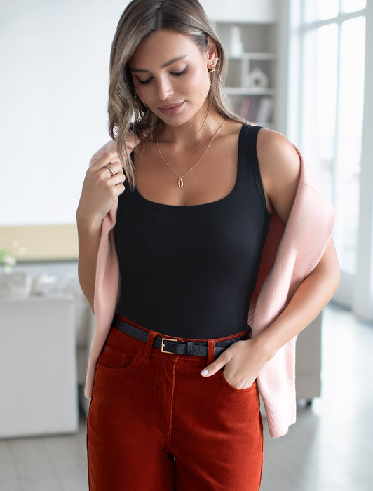 Состав: 92%Хлопок 8%ПУ; ПОДКЛАДКА- Параметры модели на первом фото: Рост 170, бюст 89, талия 63, бедра 92Топ выполнен из премиального хлопка с эластаном. Комфортное изделие из мягкой ткани очень приятное к коже, подойдет в базовый гардероб и для спортивных образов. Модель украшена фирменным металлическим логотипом бренда.