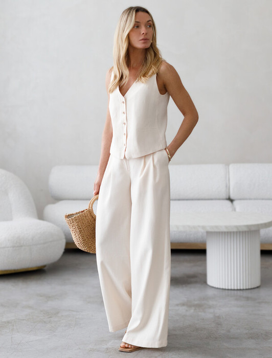 Совместные покупки Челябинск Женская одежда Брюки — Акция Vilatte Брюки-палаццо из плотного лиоцелла D24.267 кокосово-молочный
