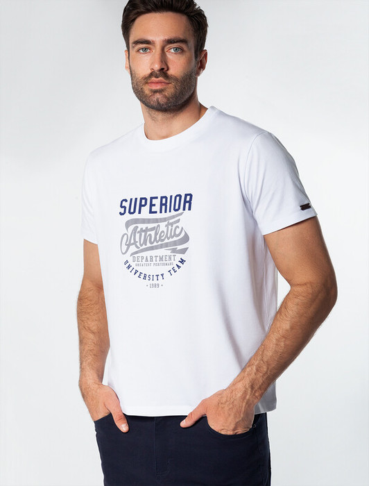 Совместные покупки Челябинск Мужская одежда Футболки — Акция Vilatte Футболка из премиального хлопка с авторским принтом U49.026 белый