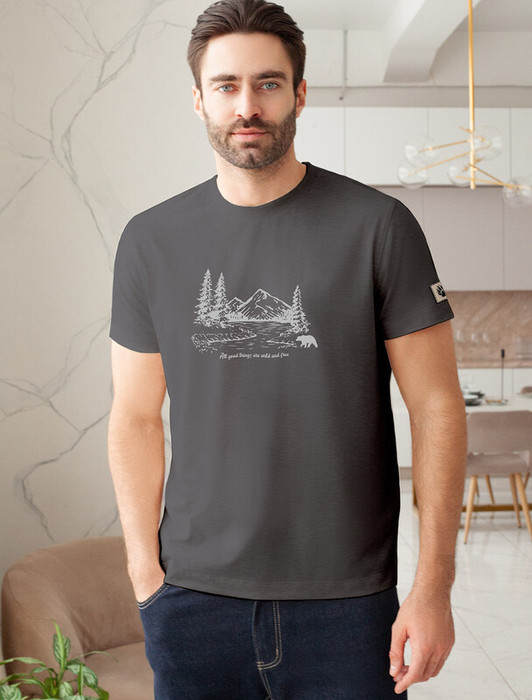 Совместные покупки Челябинск Мужская одежда Футболки — Акция Vilatte Футболка из премиального хлопка с авторским принтом U49.045 серый