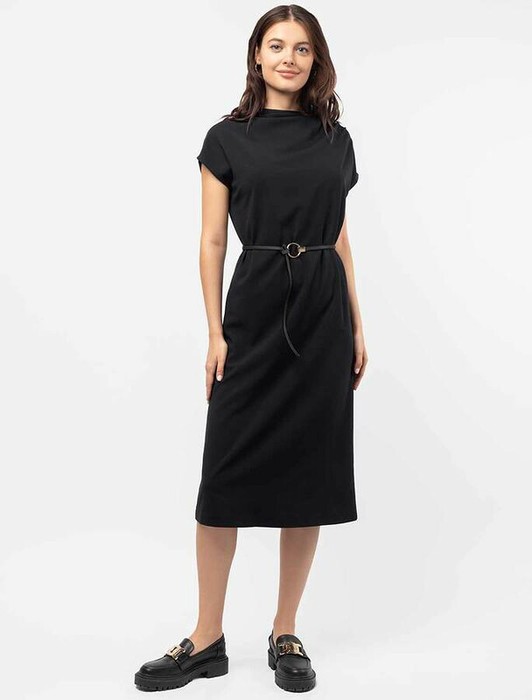 Совместные покупки Челябинск Женская одежда Платья — Vilatte Платье из эластичного крепа с ремешком в подарок D22.525 черный