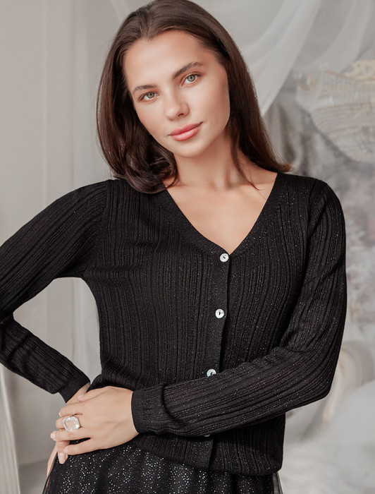 Состав: 72%Вис 28%Мет (люрекс) Параметры модели на первом фото: Рост 170, бюст 83, талия 64, бедра 88Жакет выполнен из вискозы тонкой вязки с мягким люрексом. Нежная пряжа очень приятная к коже, совсем не колется, поэтому изделие можно носить как первый слой на голое тело или с топом, как дополнение к образу. Комфортная длина выреза подходит для любой фигуры. Пуговицы из натурального перламутра подчеркивают изящный блеск изделия.