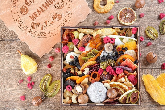 Состав: Слива красная, груша, яблоко, абрикос, абрикос био, чернослив, персик без кожуры, инжир красный, инжир белый, дыня, бананы, киви, хурма слайсы, хурма чипсы, хурма цельная, ананас, манго, имбирь в сахаре, драгон фрукт, апельсин, кокос, папайя, маракуйя, джекфрут, мандарин, финики королевские, алани, макадамия, кешью, бразильский орех, миндаль, чипсы киви, чипсы лимон, чипсы дыня, чипсы персик, чипсы слива, чипсы инжир, чипсы клубника, чипсы яблоко, чипсы апельсин, чипсы груша, чипсы арбуз, малина, облепиха, черешня желтая, черешня красная, клюква, ежевика, черника, шелковица.