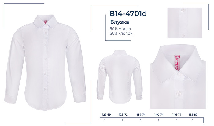 B14-4701d (122-152) 1цв (6шт) Блузка для девочек дл. рукав, BROSTEM, шт