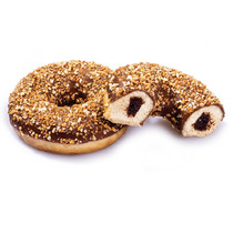 Совместные покупки Челябинск Продукты Прочая заморозка — BAKERTON Пончик Донат Шоколадная начинка шоколадная глазурь и белые полоски