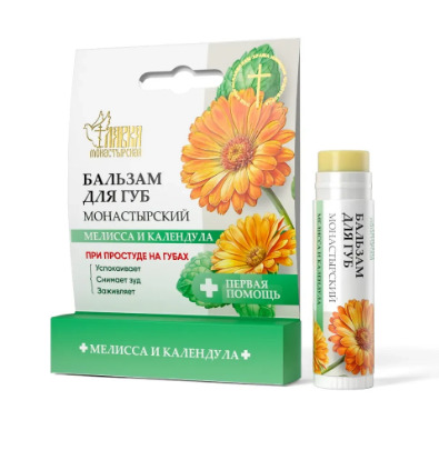 Бальзам изготовлен по монастырскому рецепту, включает в себя растительные экстракты, которые помогают коже губ в период появления герпетических высыпаний, известных как «простуда на губах». Бальзам на основе экстрактов мелиссы и календулы, направлен на облегчение дискомфорта и ускорение естественного процесса восстановления кожи.