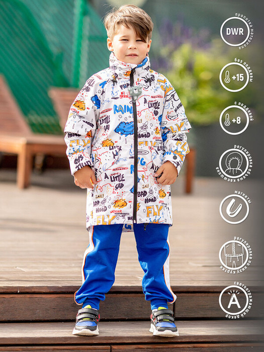 Куртка-парка для мальчика в стиле кэжуал Дрим удлиненная в белой расцветке с принтом дневник. В этой ветровке ребенку будет комфортно теплой весной и осенью.Ткань защищает от ветра и дождя, сохраняя ощущение сухости и тепла. Центральная застежка на молнию, есть капюшон. Подклад комбинированный из флиса и таффеты. Особенности: Регулируемый капюшон с кнопкой, который можно спрятать в воротникСтиль кэжуалКарманы на магнитахРегулируемый по низу рукав и низОтложная светоотражающая планка на рукавеСветоотражающие элементы и термотрансферы Характеристики:Ткань верха: Курточная ткань (мембрана) Подклад: полар флис / таффетаУтеплитель: без утеплителя Температурный режим: от +8 (с поддевой) до +15 С (без поддевы)Производитель: batik