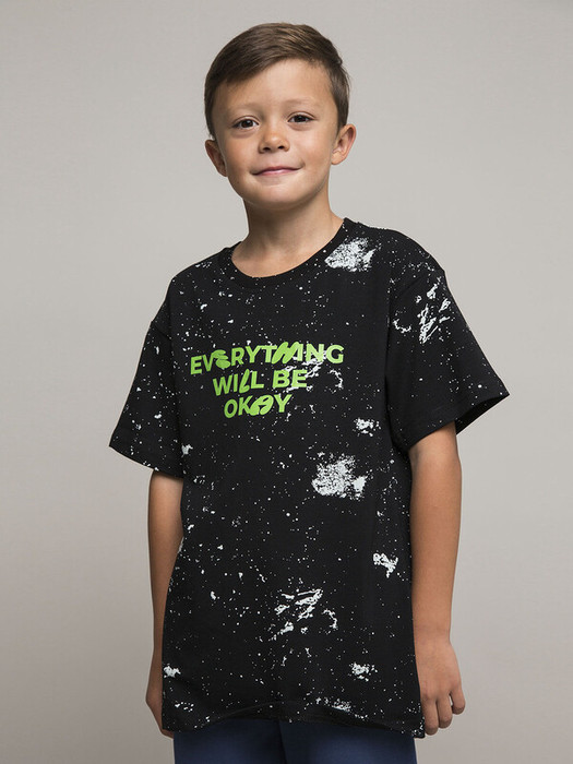 Детская футболка с коротким рукавом черная с контрастным принтом для мальчика. Стильная и оригинальная футболка, выполненная из премиального супрема. Модный принт придает образу оригинальности и яркости. Удобная округлая горловина и свободный крой для комфорта в движении. Натуральный хлопок обеспечивает воздухообмен и комфорт при носке.Характеристики:Ткань: Супрем пенье 92% хлопок 8% эластанПроизводитель: batik