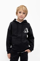 Стильный свитшот-пуловер для мальчика с космическим принтом. Классический черный свитшот из мягкого футера. Удобная модель с круглой горловиной и свободным кроем для активных движений.