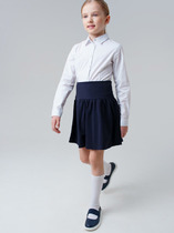 Школьная юбка-шорты черного цвета. Умная конструкция с регулируемыми хлястиками по бокам – можно точно подогнать по фигуре. Аккуратные складки спереди создают элегантный объем и свободу движений. Практичные боковые карманы – удобно хранить необходимые мелочи. Скрытая застежка-гульфик обеспечивает аккуратный внешний вид. Необработанный нижний срез придает изделию стиля и оригинальности. Качественная костюмная ткань – держит форму, не мнется, выглядит опрятно. Универсальный черный цвет – сочетается с любыми блузами и водолазками.Характеристики:Ткань: хлопок 60%, полиэстер 40%Производитель: batik