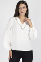 Шифоновая блузка с красивыми рукавами, украшенными декоративными резинками. Длина на рост 164-50 см. Длина на рост 170-55 см.