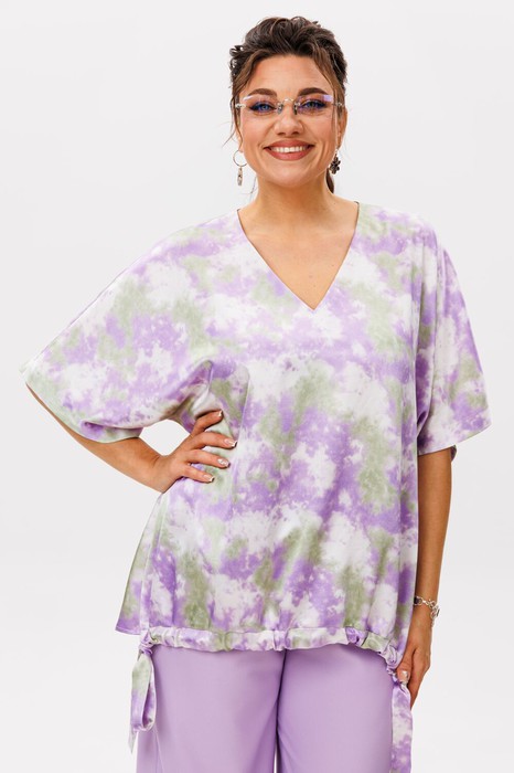 Эта блуза в цвете «лавандовое поле» — воплощение легкости и стиля, созданная для тех, кто ценит необычные детали и смелые решения. Ее свободный крой дарит комфорт, мягко облегая фигуру, не сковывая движений, а V-образный вырез горловины добавляет элегантности, подчеркивая женственность.