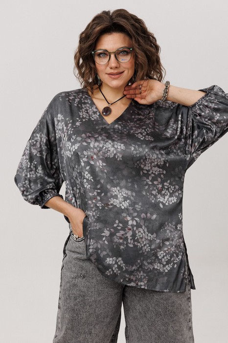 Блуза ANELLI 1665.1 графитовый гербарий
