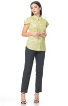 По переду выполнены нагрудные вытачки, линия плеча удлинена, что обеспечивает отличную посадку на любой фигуре, рукава свободные, укороченные, кокетливо присобраны вверху, по низу собраны на резинку.