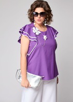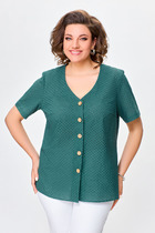 Блузка прямого силуэта. Горловина округлой формы, по спинке с застежкой на навесную петлю и пуговицу. По переду нагрудные вытачки. Рукав длинный втачной широкий, по низу на манжете со сборкой и застежкой на петли и пуговицы.