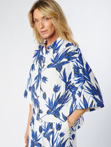 Уникальная блуза, сочетает в себе изысканный дизайн и комфорт. Прекрасно подойдет для праздничных мероприятий. Блуза полуприлегающего кроя из ткани на поверхности которой присутствует легкое элегантное мерцание кристаллов. Горловина аккуратной округлой формы. Эффектные рукава с фантазийным решением — усиливают модный акцент и придают дополнительный шарм. Декоративным элементом является съемная дизайнерская брошь.