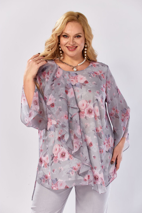 Совместные покупки Челябинск Женская одежда Блузки, рубашки — Блуза Элль стиль 2460а серый, розовый принт