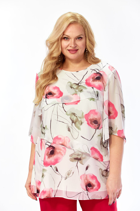 Совместные покупки Челябинск Женская одежда Блузки, рубашки — Блуза Элль стиль 2465а белый, красные маки