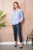 27.03 Vilatte Блузка свободного силуэта в тонкую полоску из эластичного хлопка